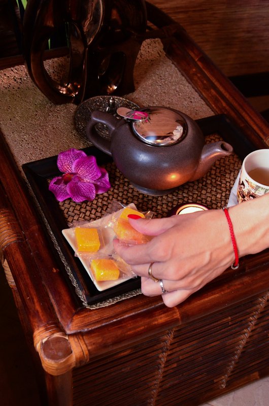 Еще после процедуры угостили тарелочкой фруктов с приятным тайским чаем)